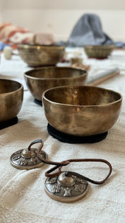 Samen met Liselotte creeërden we de "Waves of embrace". Een unieke soundhealingssessie aarbij klank en aanraking centraal staan.